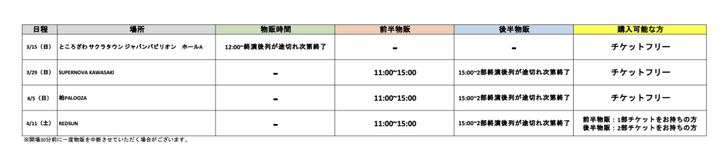 ※4/18(土)@Zepp Nagoya公演以降の物販情報は後日お知らせいたします。