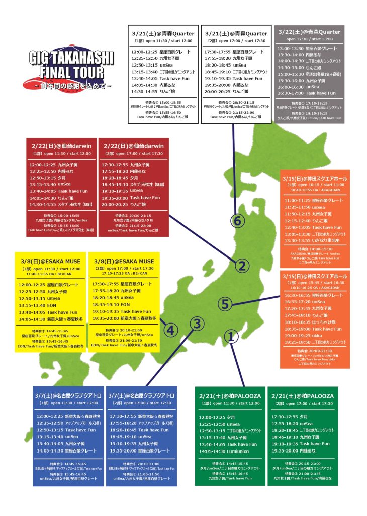 「GIG TAKAHASHI FINAL TOUR〜10年間の感謝を込めて〜」千葉公演のタイムテーブルが決定しました!